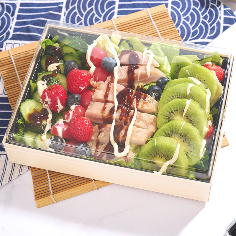 Wholesale wooden disposable high-end light meal boxes, commercial Japanese sashimi rectangular takeout sushi packaging boxes